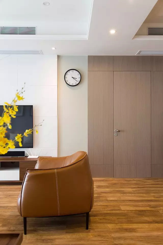 ▲主卧门正对客厅,采用隐形门的设计形式,使客餐厅整体感更强,也使卧室空间变得隐蔽且有趣味性。