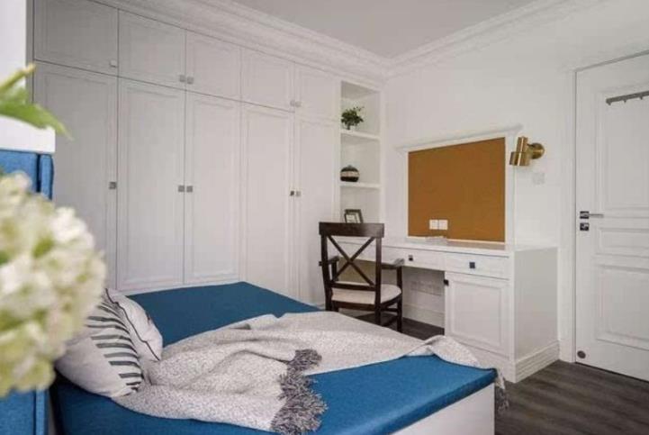 书房的功能性很强,可以兼顾书房,也可以用来当客房,定制的榻榻米和整体的衣柜,书桌十分大气上档次,隔板的设计可以摆放一些装饰物品和杂物,整体的白色系高贵精致.