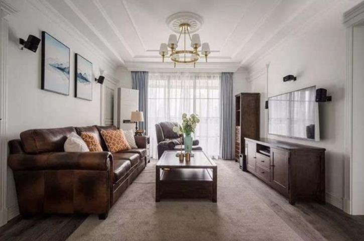 客厅选用深色皮质家具,和白色的背景达成平衡,也特别的复古,和后期神色系的电视柜和茶几都可以相互呼应,很符合业主想要的精致感,一切符合心意的搭配才是享受生活的基础.