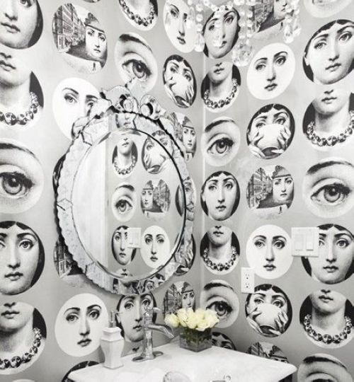 美丽的姑娘是挺养眼的,这样来做壁纸或者是墙面的图案,确实是时尚又挺复古的感觉,可是你仔细想象一下,夜晚,开上灯,照着镜子,洗了脸,忽然看向旁边,这么多双眼睛,这么多面孔,你真的不怕么?